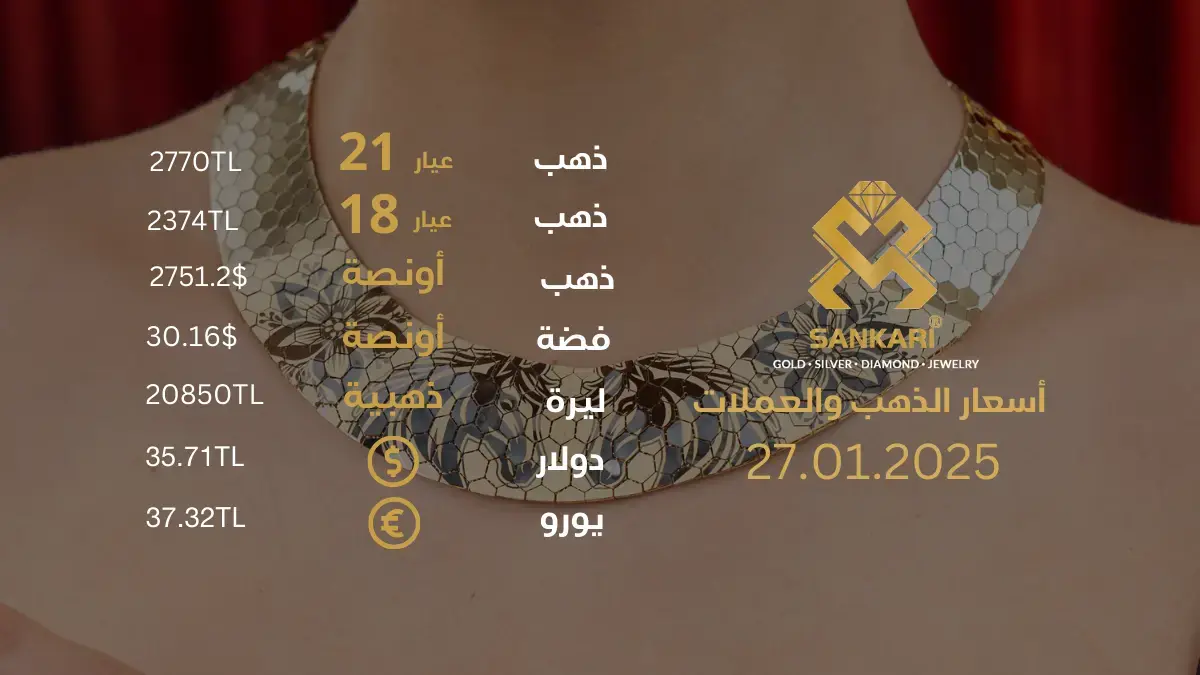 | سعر الذهب عيار 21 | 2770 ليرة تركية |